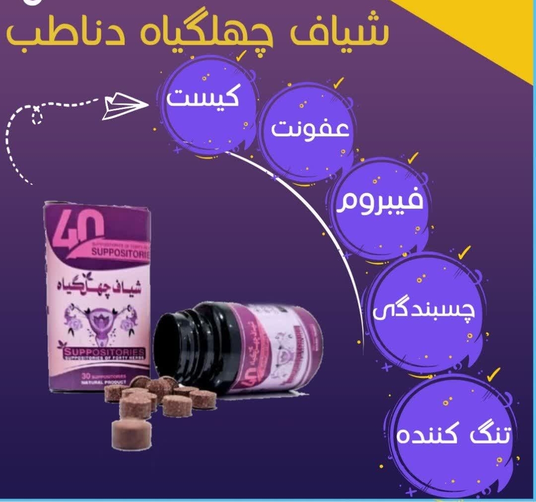 💥اثرات شیاف چهل گیاه💥 🌼دفع عفونت های شدید قارچی خیلی از خانم ها عفونت رحم دارن با استفاده از شیاف معجزه اسای چهل گیاه قطعا شاهد دفع باور نکردنی عفونت های شدید خواهید بود 🌼اضافه های مانده از سقط جنین 🌼رفع چسبندگی رحم 🌼دفع هر چیز اضافی در رحم مانده از زایمان هان ها و لختگی خون در رحم 🌼پاک و صاف و صیقل دادن ب رحم و گرم نگه داشتن رحم و اماده سازی ان برای باروری 🌼تنظیم بی نظیر چرخه ی قاعدگی 🌼رفع درد های زیر شکم و پایین کمر 🌼رفع تنبلی تخمدان 40عددی معجزه ای باورنکردنی بدون یک نفر ناراضی.هر خانم متاهلی ببره قطعا شیاف را ب دیگران نیز معرفی میکنید👍