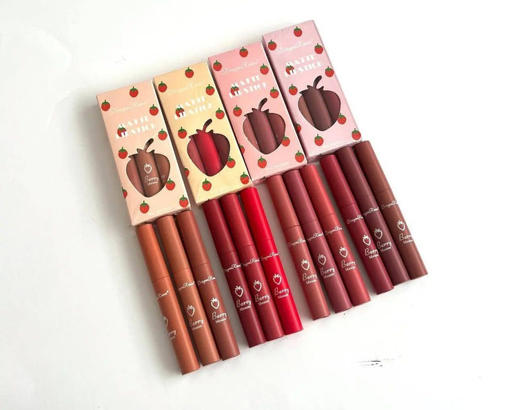 رژ مایع سه عددی توت فرنگی قیمت یک پک سه عددی