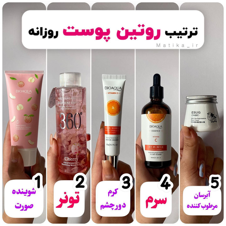 روتین پوستی عالی برای همه 👌 به ترتیب از چپ به راست باید استفاده کنید قیمت فوم هلو تیوپی :۶۵ قیمت تونر ووکالی :۱۳۰ قیمت دور چشم ویتامین سی :۵۵ قیمت سرم ویتامین سی :۹۸ قیمت آبرسان کاسه ای شیر گاو :۵۵