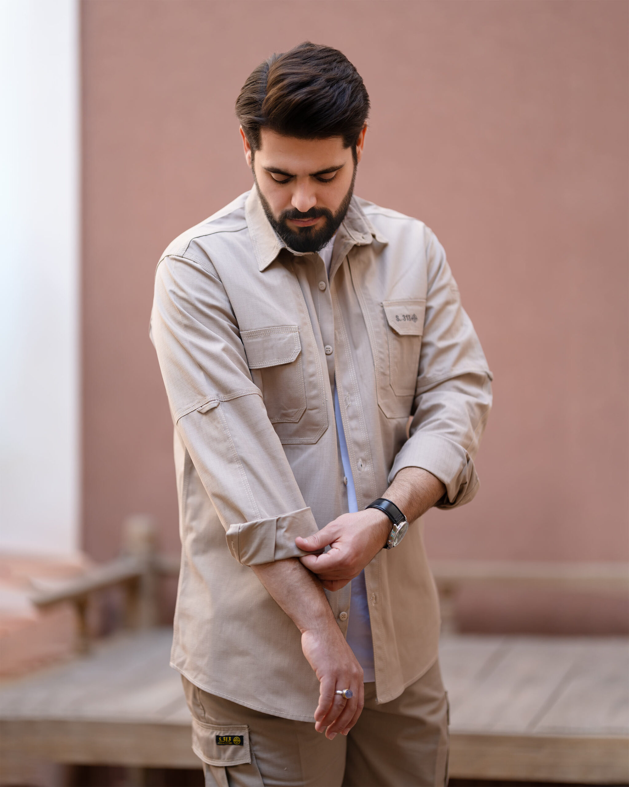 جنس و ترکیب: بافته شده از ترکیب پنبه و پلی استر با طرح بافت تافته و سرژه ریپ استاپ(شطرنجی)که در مقابل پارگی و جر خوردگی از مقاومت بالاتری نسبت به پارچههای معمول برخوردار است.